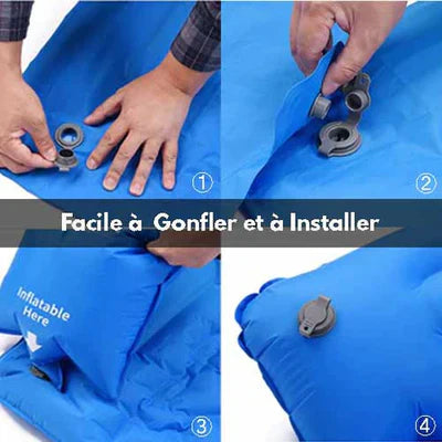 AirMatelas® XL, un colchón inflable superligero del tamaño de una botella de agua. Te acompañará en tus viajes diarios.