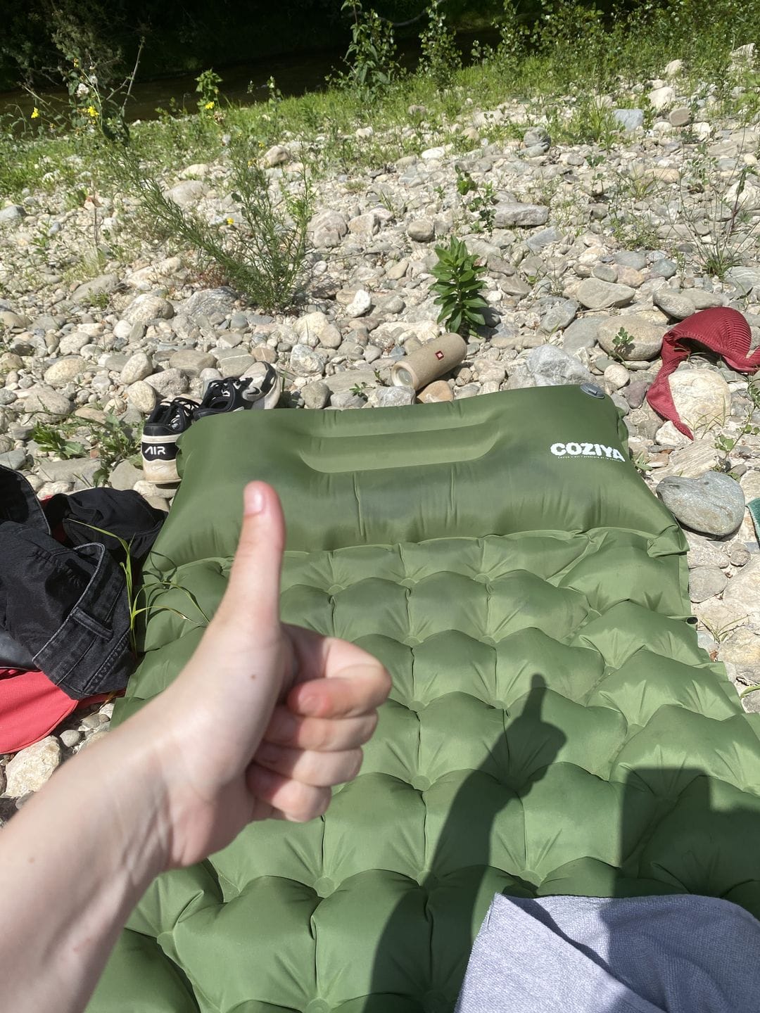 Soy fan, ya sea para el río, la playa, acampar, pescar o hacer senderismo. Lo uso casi todos los fines de semana para actividades al aire libre. El colchón es lo suficientemente grueso como para ser cómodo, pero no demasiado, y resulta práctico para transportar e inflar gracias a la bomba integrada. Recomendé a mis amigos que lo compraran. A pesar del precio un poco elevado, la calidad es excelente.