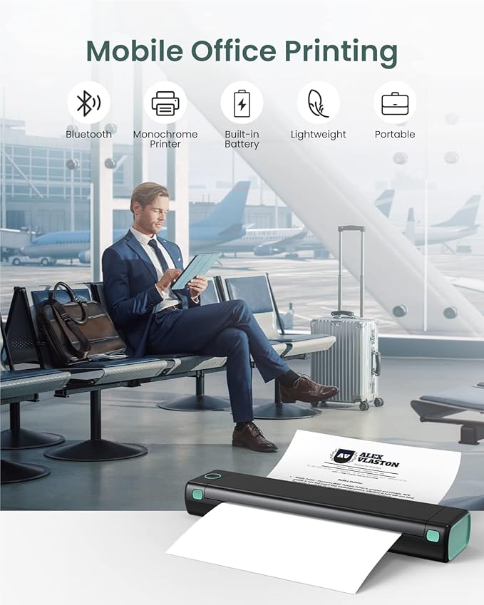 Soy camionero y esta impresora me acompaña a todas partes. Es compacta, ligera y cabe perfectamente en mi bolso. Puedo imprimir mis documentos directamente desde mi teléfono sin problemas. ¡Realmente práctica!